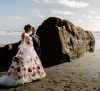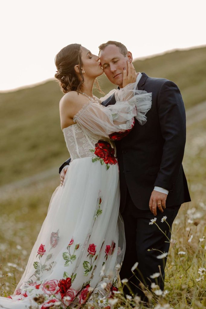 “Drawing inspiration from her childhood garden and Shirley Barber fairy illustrations, Whitney wanted their day to be filled with the brightest hues and, of course, lots of love and joy. “I wanted everything to be bright and festive, yet rustic and nature inspired”, she told us. “The day was dripping with colourful flowers just like a fairy party in the woods! Even our guests wore florals, it was great. The dreamy aesthetic inspired me to buy my dream wedding dress: a gorgeous floral gown by Chotronette, which was my first big wedding purchase. I felt like a fairy princess in it!”