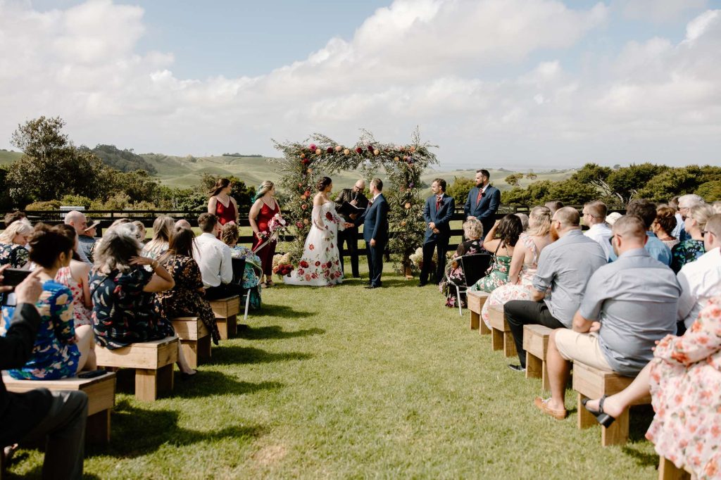 The Connemara Country Lodge, in Awhitu, New Zealand, its dramatic natural backdrop, played host to Whitney and Chris’ spring wedding. The day encapsulated the essence of what Whitney describes as a ‘Fairy-Party-Chic’ theme, with bright and festive details and lots of lush florals. Even the bride and their guests dressed in floral patterns, really bringing the theme to life.